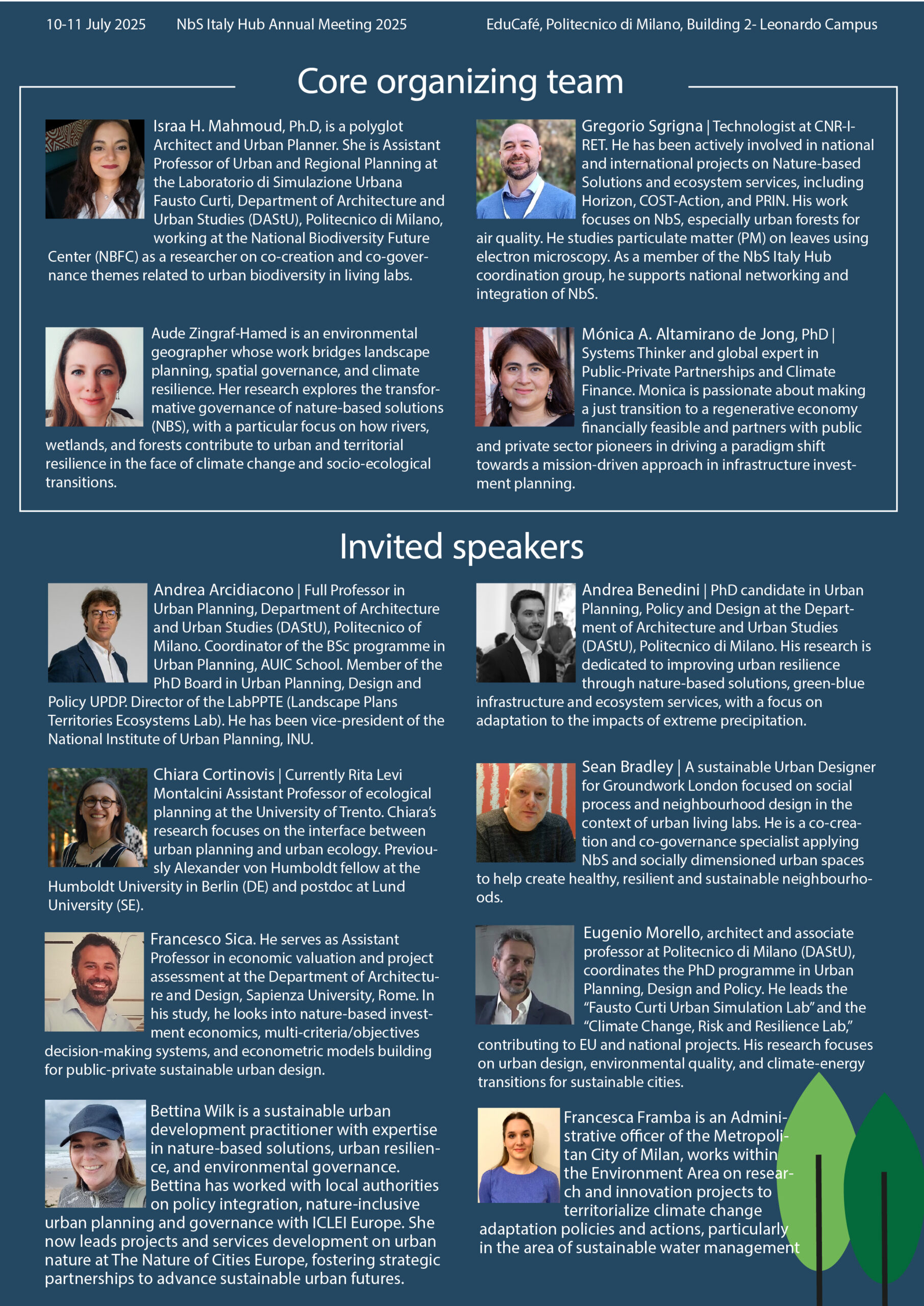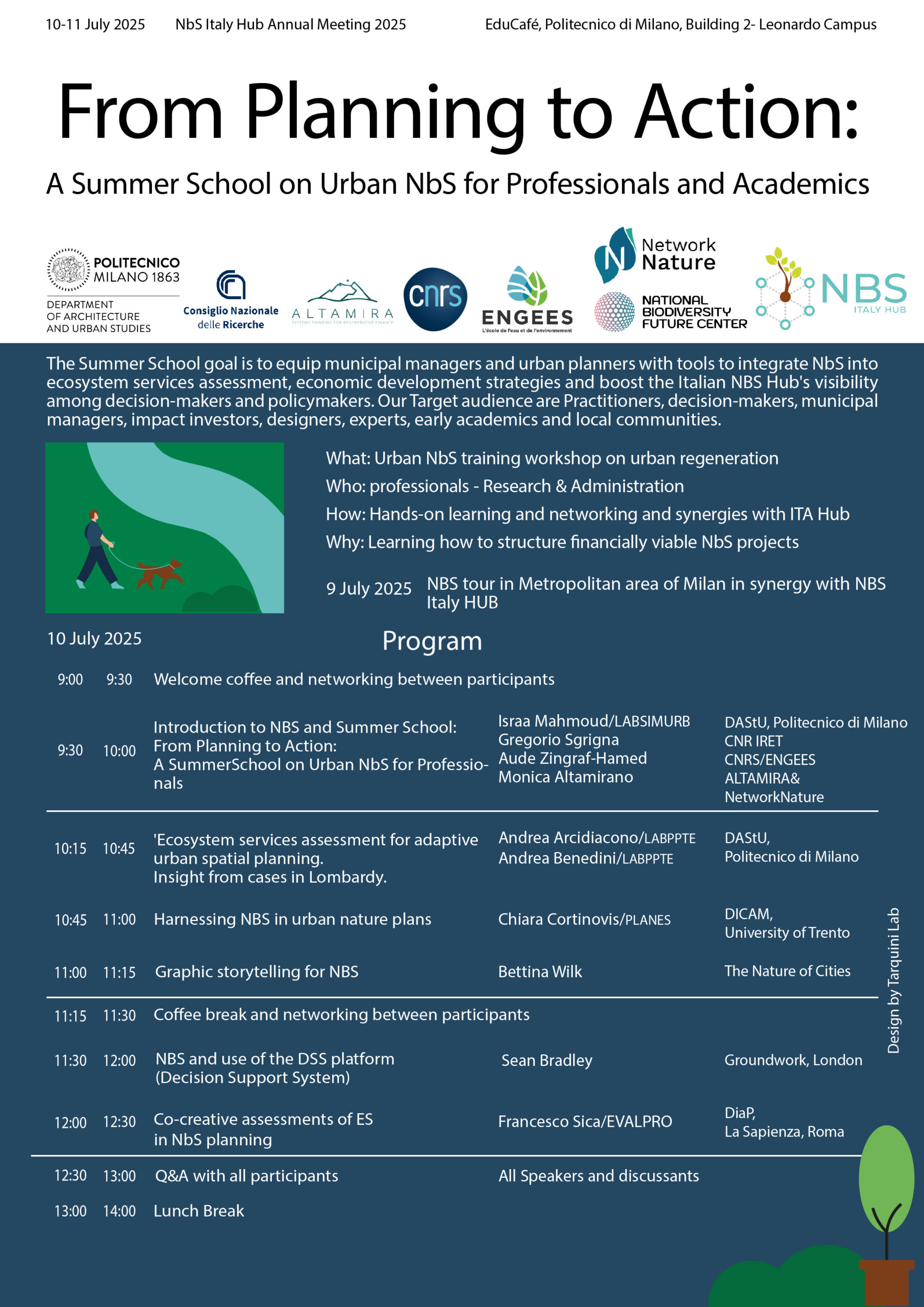 As part of the NbS Annual Meeting 2025, “From Planning to Action: A Summer School on Urban NbS for Professionals and Academics” will take place on July 10th and 11th, 2025, at Educafé, within the Leonardo Campus of Politecnico di Milano.